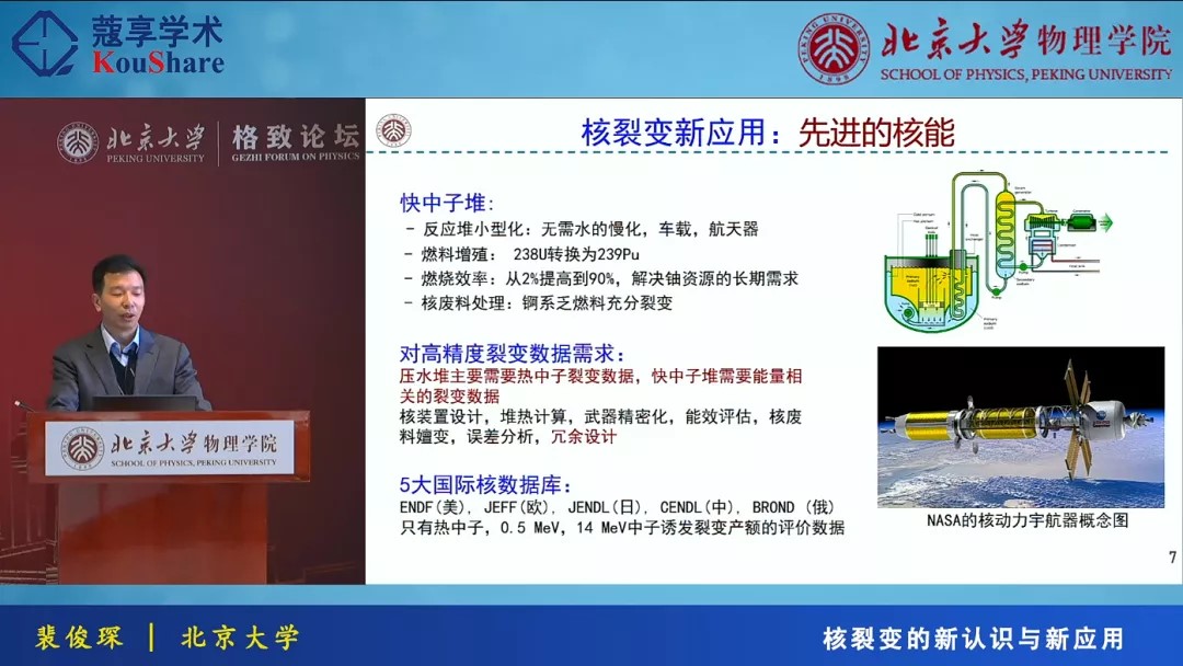2021年11月5日,由北京大学物理学院主办,核物理与核技术国家重点实验室、北京物理学会联合承办的北京大学格致论坛(第五讲)在蔻享学术平台直播。北京大学物理学院技术物理系新体制长聘副教授裴俊琛应邀作了题为“核裂变的新认识与新应用”的学术报告。本次论坛由技术物理系教授、核物理与核技术国家重点实验室学术委员会副主任叶沿林主持。