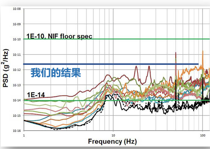 (图4:怀柔中心测得地基振动与NIF、ELI等世界一流大型科学装置的结果对比)