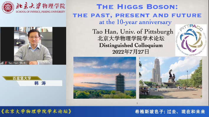会议最后一天,为纪念希格斯粒子发现十周年并献礼北京大学物理学科百十周年,主办方邀请到美国匹兹堡大学杰出教授及粒子物理天体物理宇宙学中心主任、美国物理学会会士、美国物理学会粒子物理与场论分部主席韩涛教授,为大家分享了题为《希格斯玻色子:过去、现在和未来》的公开讲座,150余名专家学者通过ZOOM会议参与,同时在蔻享学术、北大物理人B站视频平台同步直播,有近2500人次观看了直播。公开讲座面向全国大众,深入浅出,引起了大家极大的兴趣。各位专家学者以及网友热情提问,韩涛教授耐心进行了解答。本场讲座持续了两个多小时,观众纷纷网上留言,在这场科学盛宴中,不仅了解了最前沿的物理知识,更感受了物理学家对真理上下求索的执着精神。
