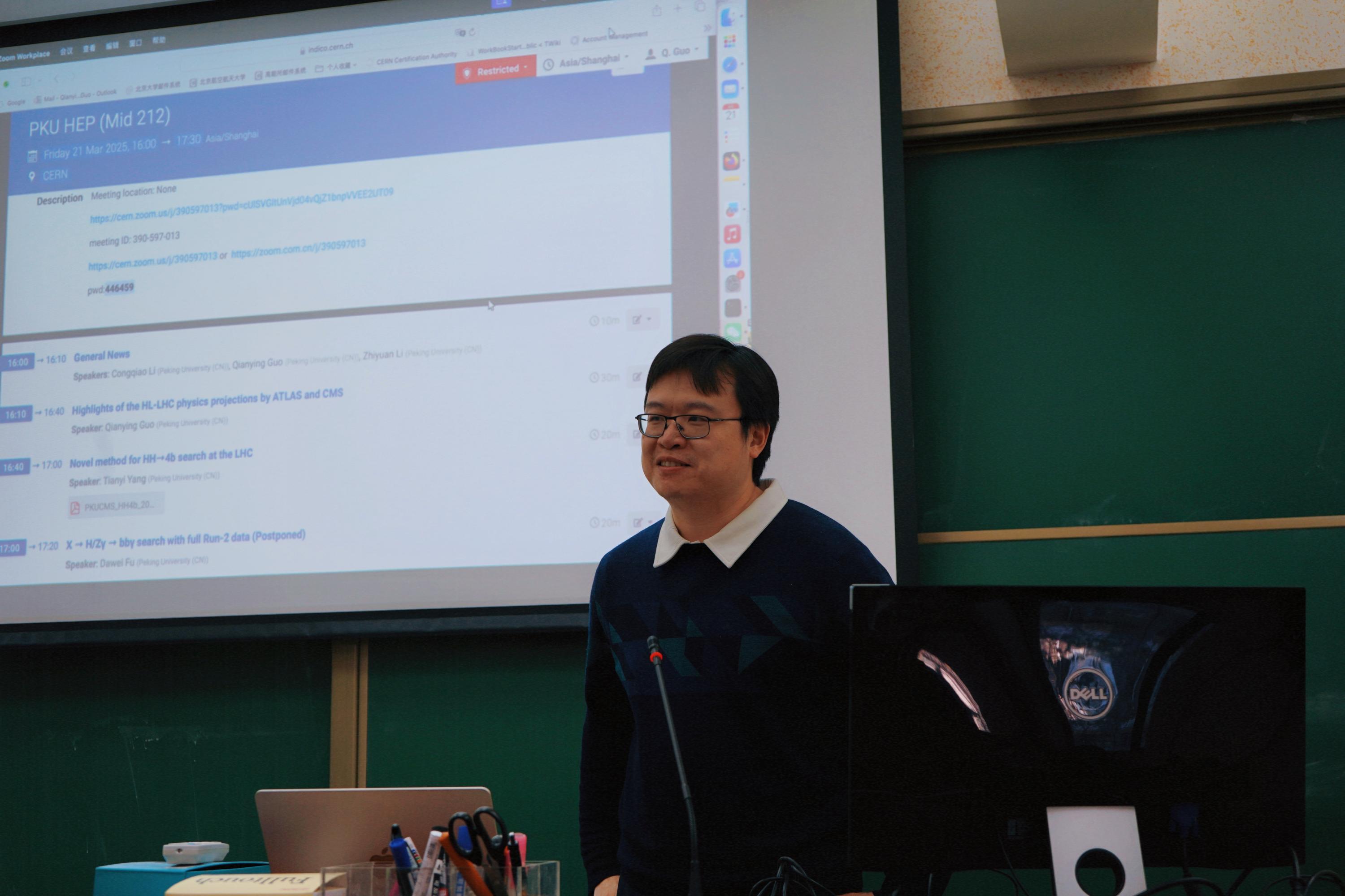 2025年3月21日下午4点至5点30,物理中楼212房间内,北京大学技术物理系高能物理CMS及BES团队用一场特别的公开组会,向本科生们展示了科研最真实的模样——严谨、开放,且充满碰撞的火花。冒亚军教授、李强教授、王大勇长聘副教授、孙小虎助理教授及周辰助理教授等资深学者悉数到场,与20多位研究生,以及20多位本科生同学共赴科研之约!