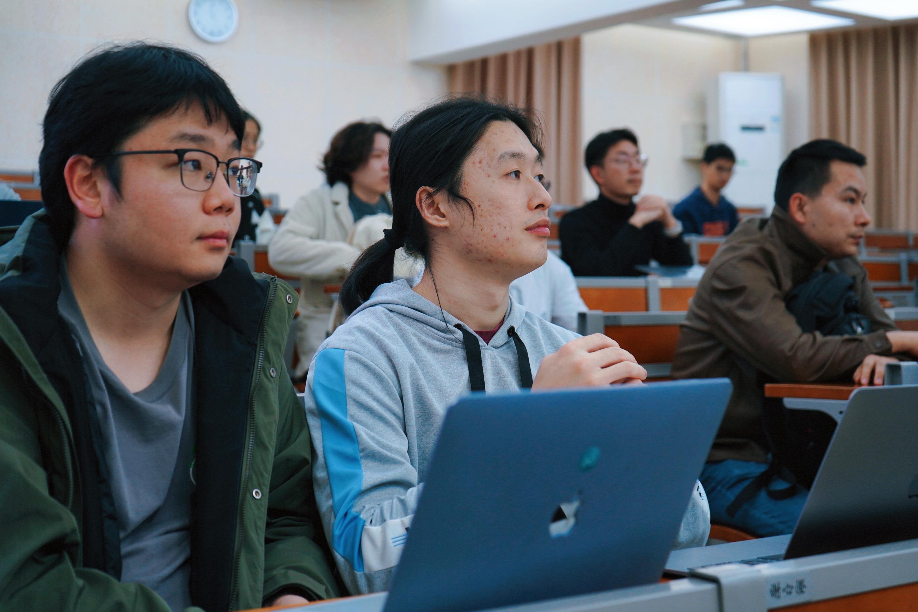 此后,郭倩颖博士后揭秘“高亮度大型强子对撞机的物理前景”,带大家穿越时空预见未来实验的星辰大海;杨天一博士生展示“AI赋能双希格斯粒子的物理分析工作”,用算法打开高能物理的新维度。现场讨论热烈,本科生们从“如何入门科研”到“希格斯机制的本质”抛出连珠妙问,学者们以深入浅出的解答点燃全场思维火花,让本科同学感受到了高能物理科研团队的工作模式。