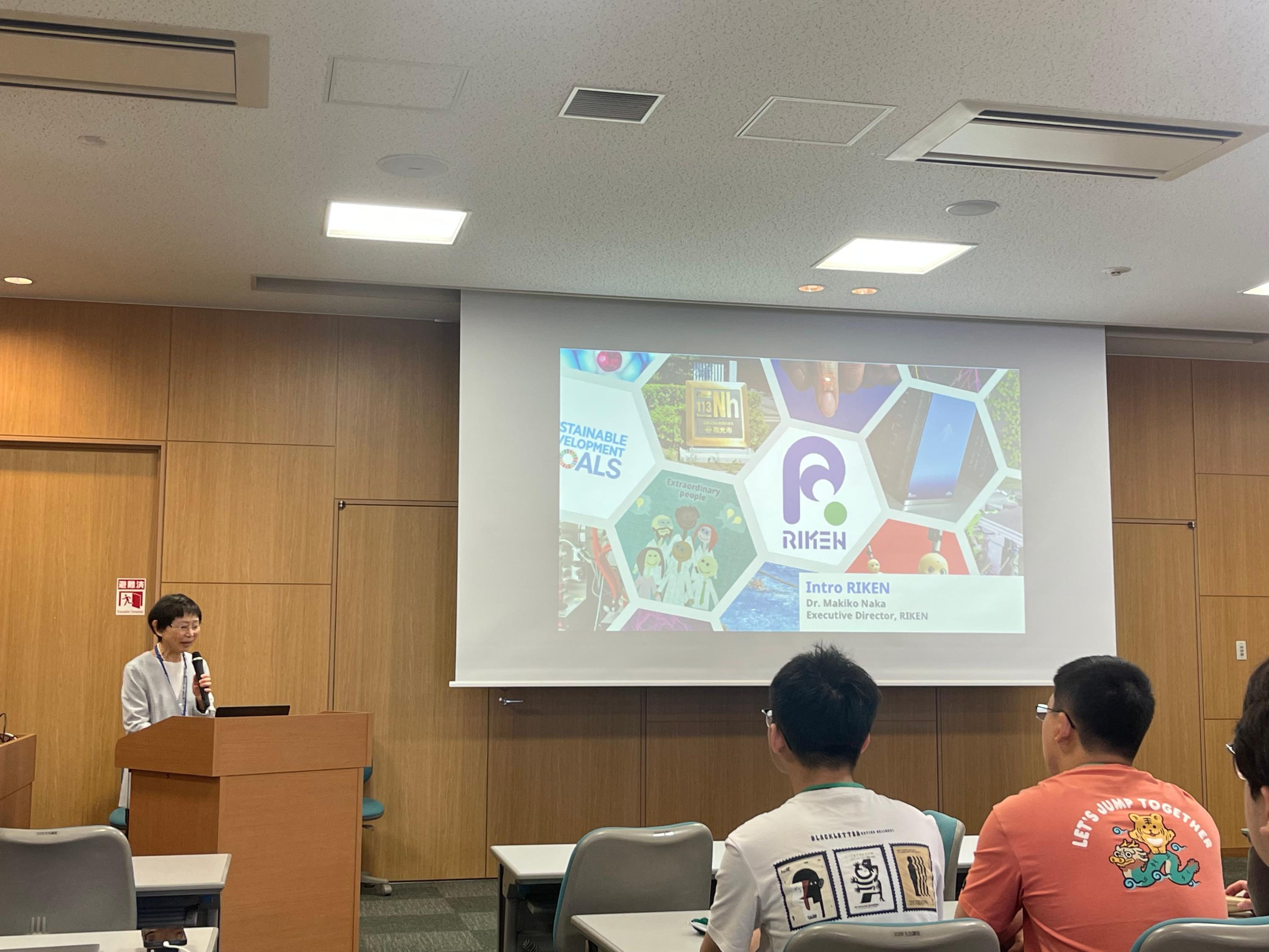 本届Nishina School于7月25日开幕。首日上午,理研的Hironobu Ishiyama教授主持开营仪式,副理事长Makiko Naka博士首先介绍了理研的发展历程、科研方向及仁科学校的创立初衷,随后仁科中心主任Hiroyoshi Sakurai教授对中心的加速器设施及研究方向做了详细介绍。北京大学杨再宏老师回顾了Nishina School与北大多年的合作历程,并强调该项目对学生科研能力提升的深远意义。来自中国、日本、韩国、美国等地的师生依次进行自我介绍,展现了多元文化背景下的个人风采和学术热情。