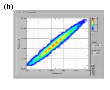 图3:(a)MMDIS引出束流参数: 22 mA DC H₂⁺,比例70%;(b)束流相图及发射度。