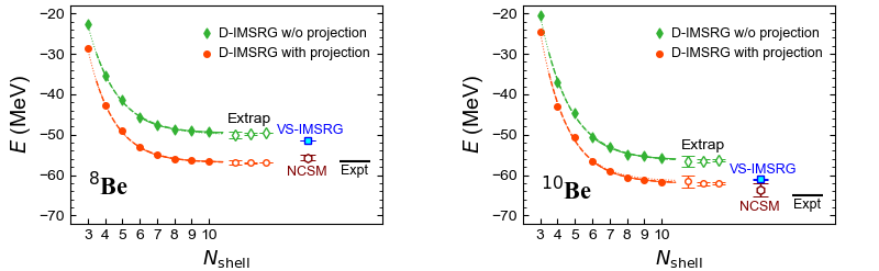 图1.形变介质相似重整化群方法(D-IMSRG)计算8,10Be的基态能量