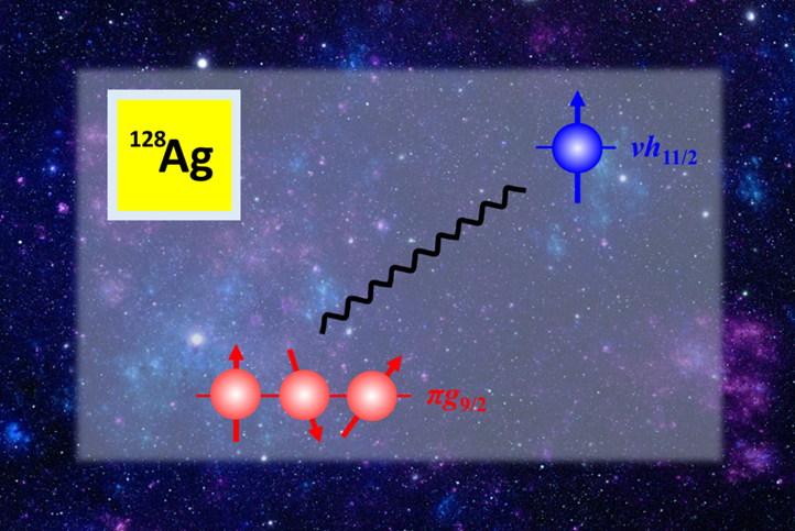 近期,北京大学物理学院技术物理系、核物理与核技术全国重点实验室的李智焕、华辉课题组和华东师范大学物理系的程奕源等合作者对奇奇丰中子核128Ag(Z=47,N=81)中的辛弱量子数(见图1)及其结构开展了研究。利用日本理化学研究所提供的放射性核束,首次在128Ag核中发现了具有辛弱结构的同核异能态,其衰变路径与邻近单幻偶偶核128Pd和130Cd中的结构非常相似(见图2)。对比邻近的同中子核130In,一个重要的发现是它们最低的9-和10-能级次序出现了反转(见图3)。联合研究团队利用壳模型对128Ag核中同核异能态的结构特性进行了研究。在不考虑质子Z=50和中子N=82跨壳激发的情况下,壳模型计算结果很好解释了实验观察到的128Ag核中同核异能态的结构和衰变路径。通过分析质子-中子相互作用的不同成分,发现同中子核128Ag 和130In中出现的9-和10-能级反转现象可以归因于质子-中子相互作用中辛弱不守恒的成分。研究有力支持了中子N=82主壳在银同位素中的稳健性。