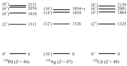 图2.128Pd,128Ag和130Cd的部分能级结构比较